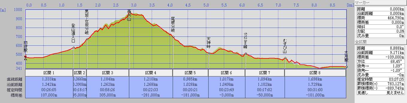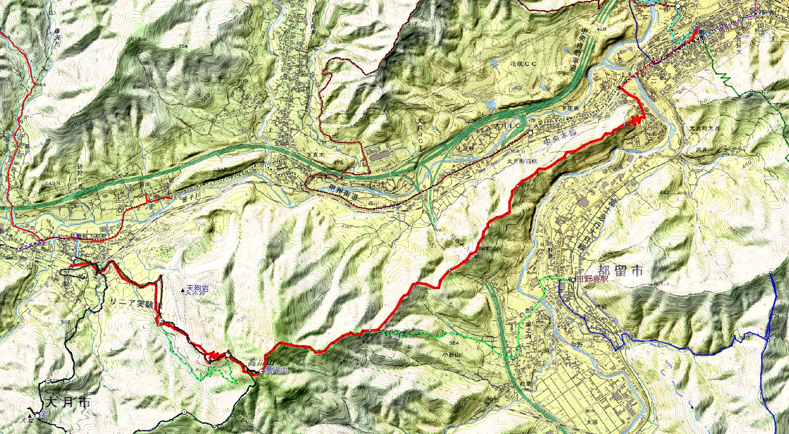 初狩駅〜高川山〜峯山〜むすび山〜大月駅