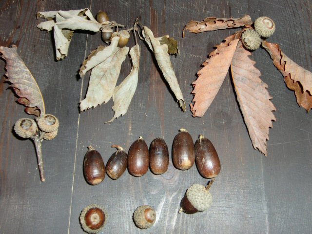 サルギ尾根で拾った団栗です。右はしや左はしの、葉に切れ込みの多いのがミズナラです。