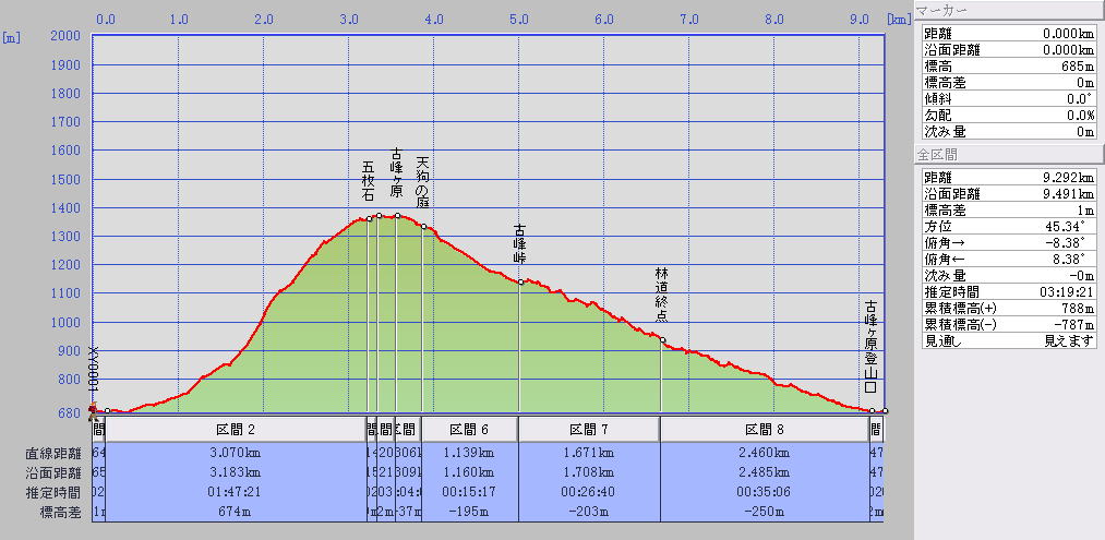 | 今回の参加者:くぼっち、このちゃん 実働時間:4時間10分 累積登高差:(+)788m 踏破距離:9.5km |