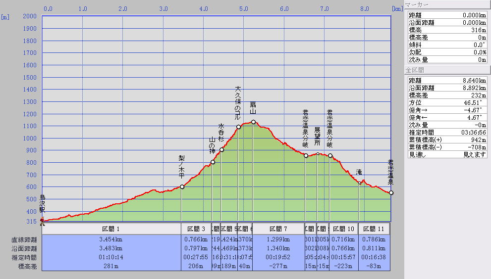 | 今回の参加者:あきちゃん、なおちゃん、のんちゃん、このちゃん 実働時間:4時間 累積登高差:(+)942m 踏破距離:8.9km |