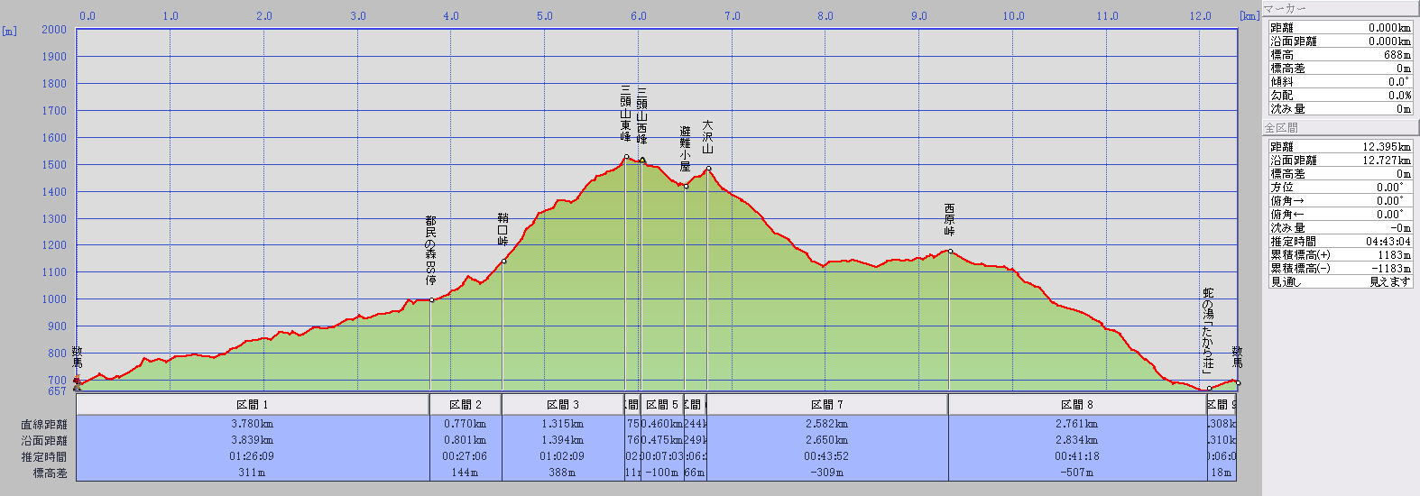 | 今回の参加者:なおちゃん、のんちゃん、このちゃん 実働時間:4時間55分 累積登高差:(+)1183m 踏破距離:12.7km |