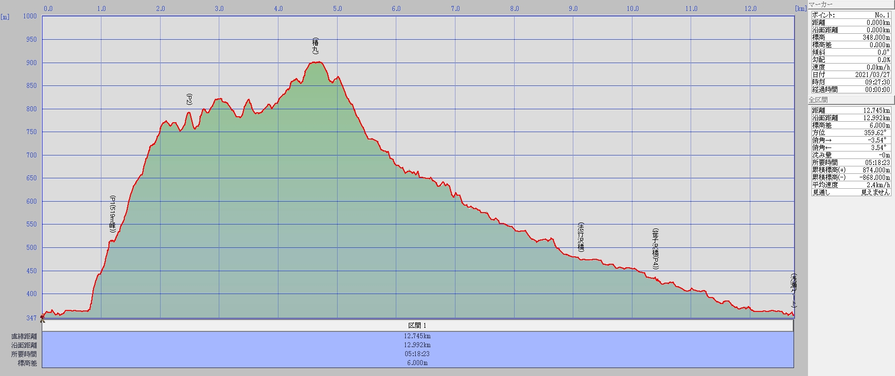 浅瀬ゲート~519m峰~795m西ピーク~椿丸~法行沢橋~浅瀬ゲート