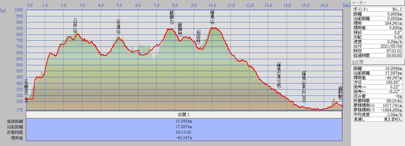 元郷〜臼杵山〜市道山〜陣馬山〜藤野駅