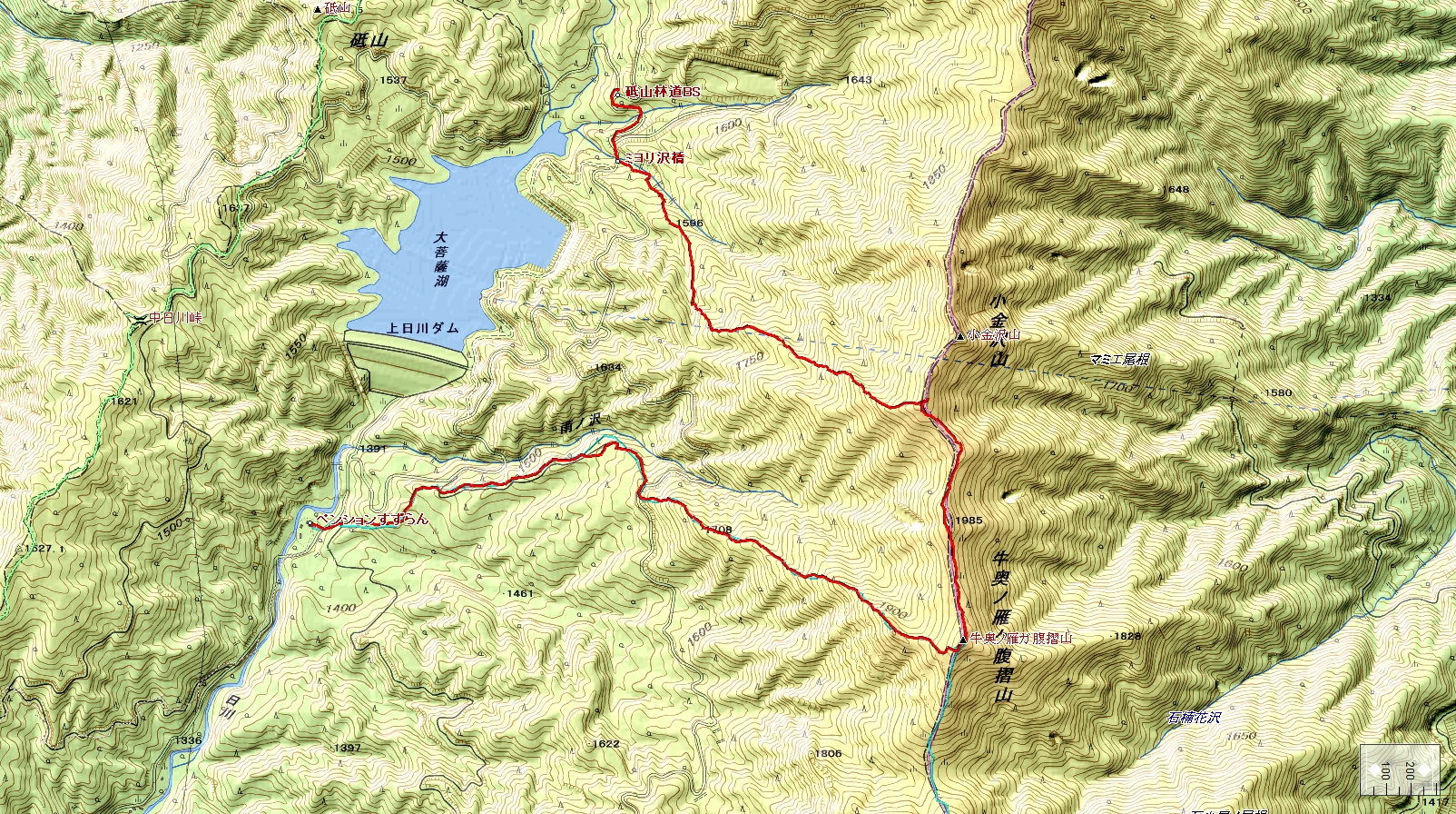砥山林道BS~ミヨリ沢橋~牛奥ノ雁ヶ腹摺山~ペンションすずらん