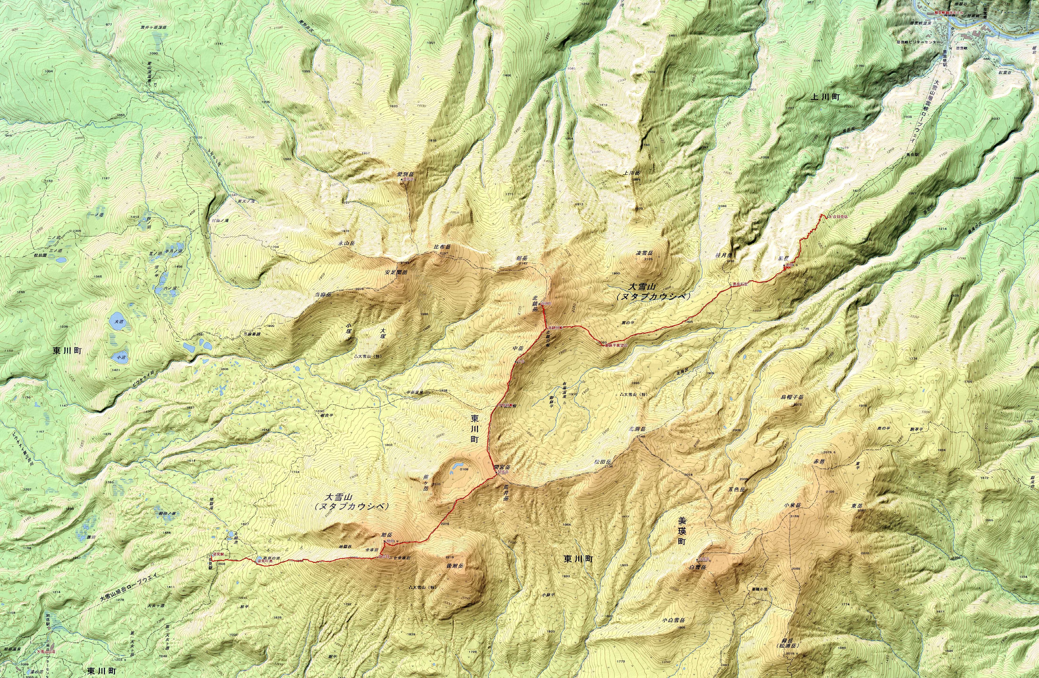 姿見駅~旭岳~間宮岳~中岳~北鎮岳~黒岳~七合目リフト