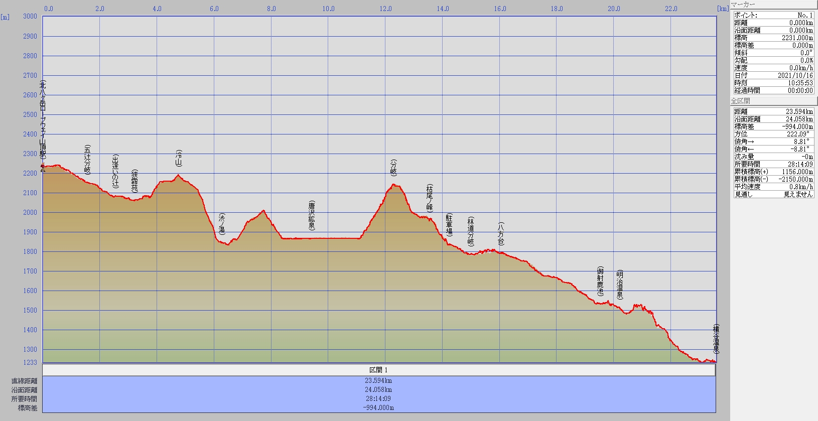 北八ヶ岳ロープウェイ山頂駅~冷山~渋の湯~唐沢鉱泉~枯尾ノ峰~八方台~明治温泉~横谷温泉 Trail Map 2021年10月16日(土)~17日(日) 写真&ご報告へ戻る このちゃんINDEXへ