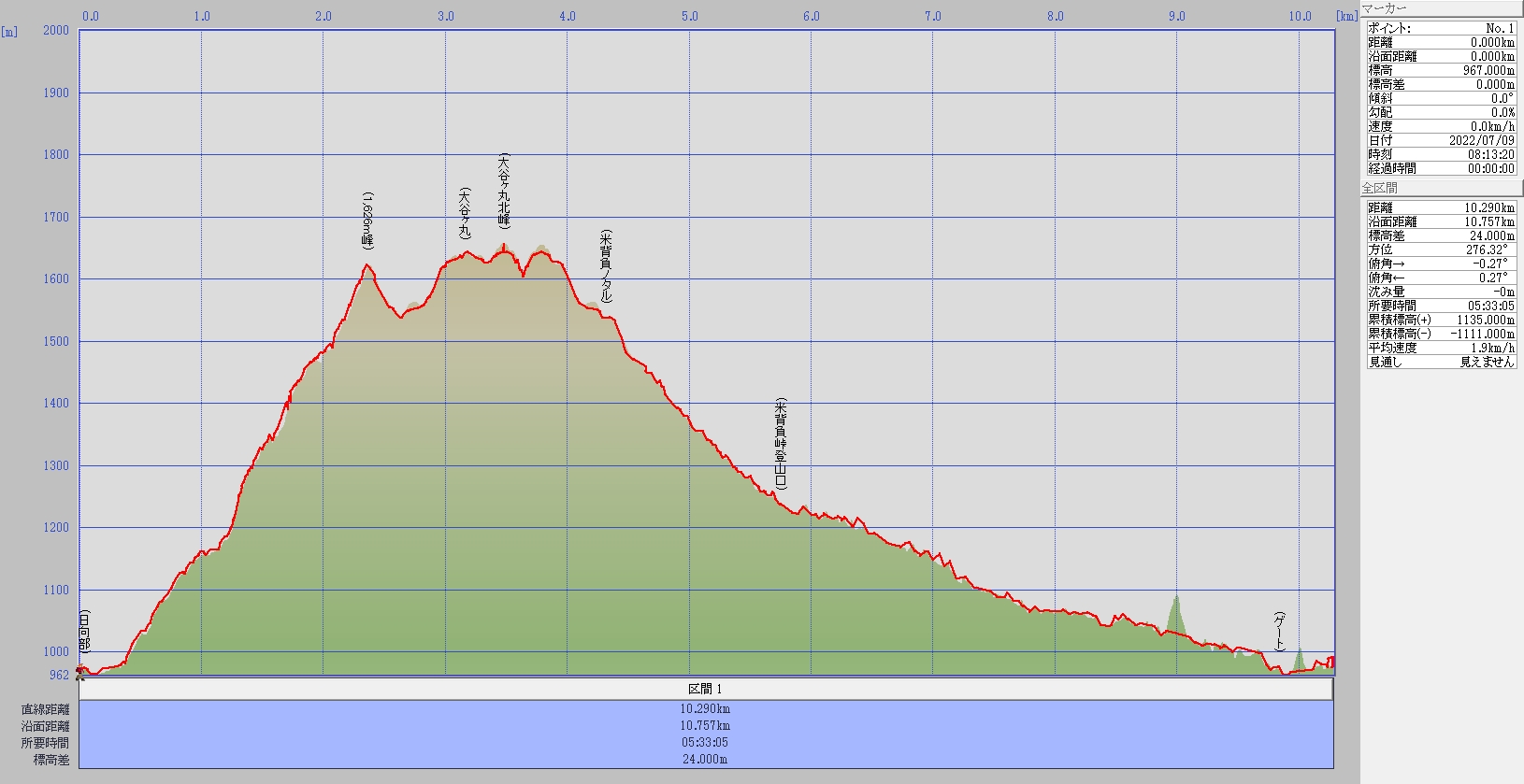 日向部~大谷ヶ丸~大谷ヶ丸北峰~米背負峠~やまと天目山温泉