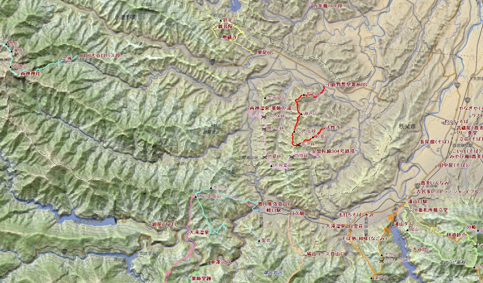 法性寺山~般若山~565m峰~522m峰~渕沢山~育玉山~小鹿野警察署前BS