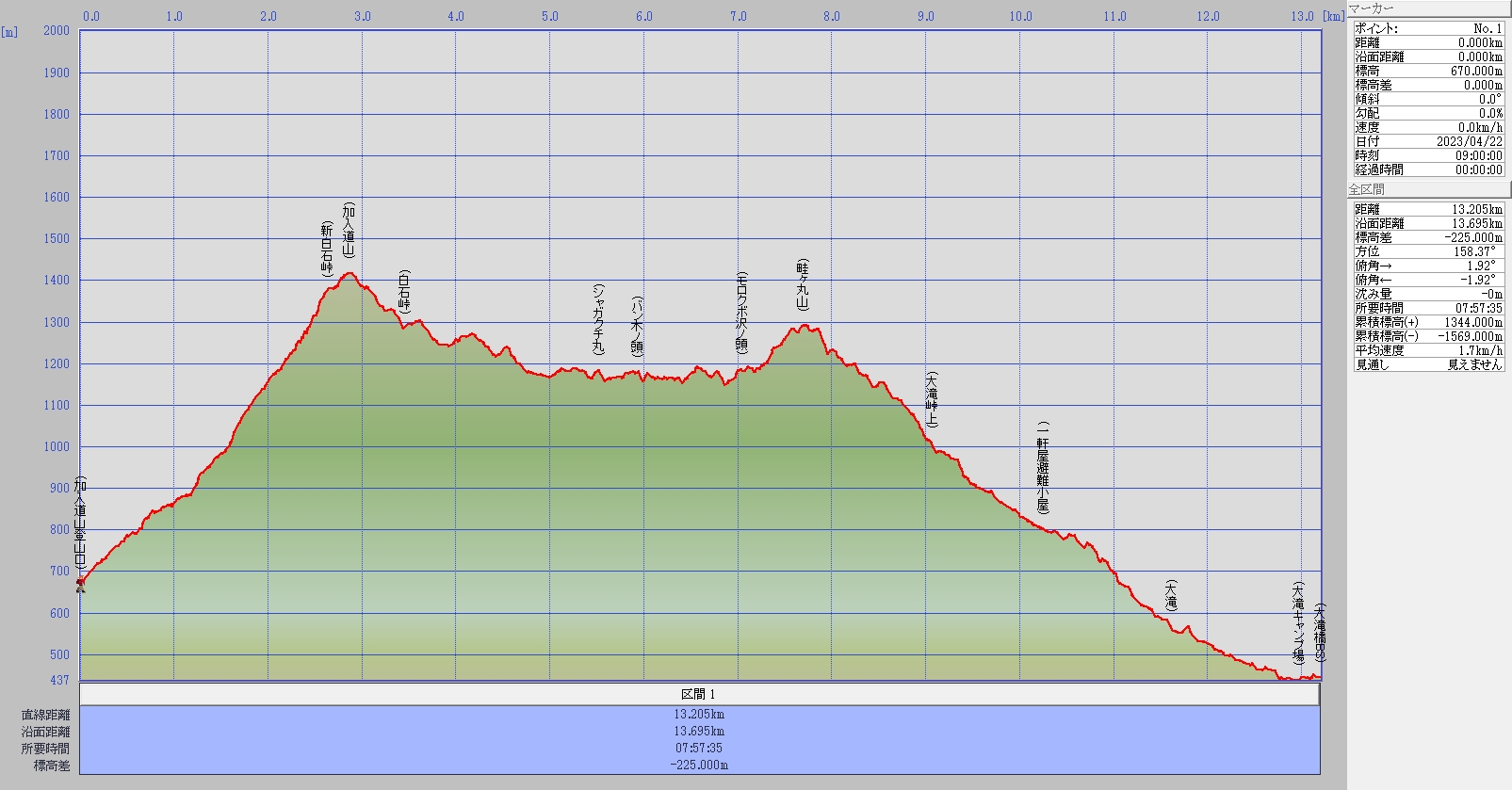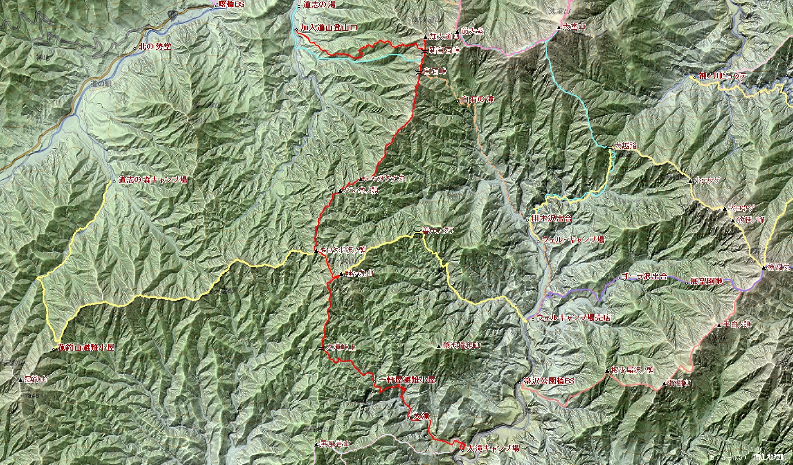 加入道山登山口~加入道山~白石峠~バン木ノ頭~畦ヶ丸~大滝峠上~大滝橋BS