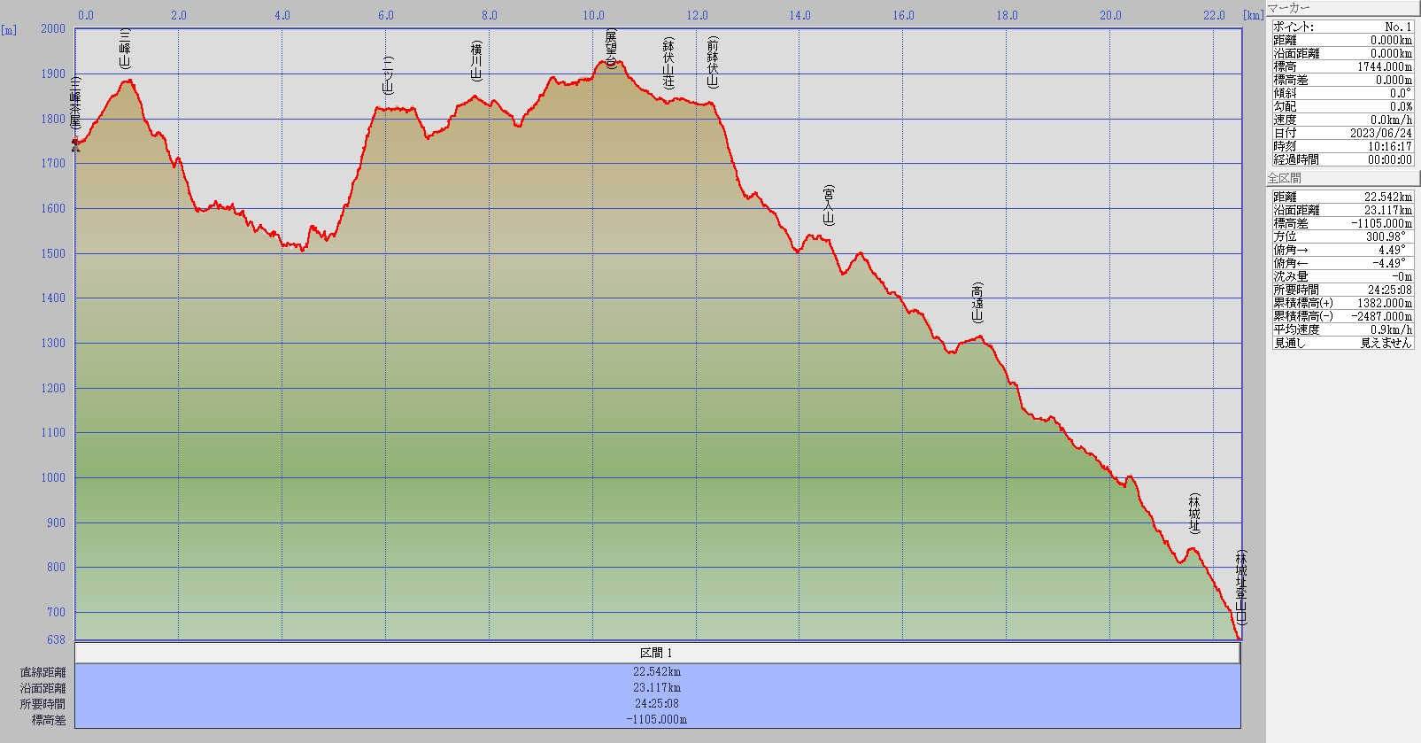三峰茶屋~三峰山~二ツ山~横川山~鉢伏山~鉢伏山荘~前鉢伏山~宮入山~高遠山~林城址~林城址登山口 Trail Map 2023年6月24日(土)~25日(日) 写真&ご報告へ戻る このちゃんINDEXへ