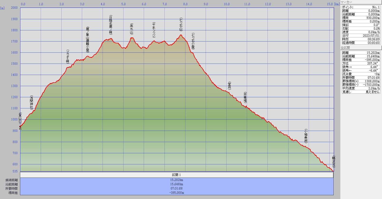 登山口~鷹ノ巣山避難小屋~日蔭名栗山~高丸山~千本ツツジ~七ツ石山~小袖乗越~鴨沢BS