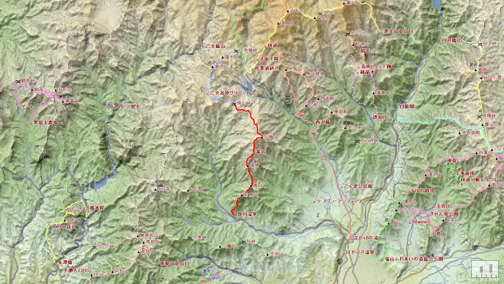 焼山峠~小楢山~幕岩~差山~妙見山~皷川温泉