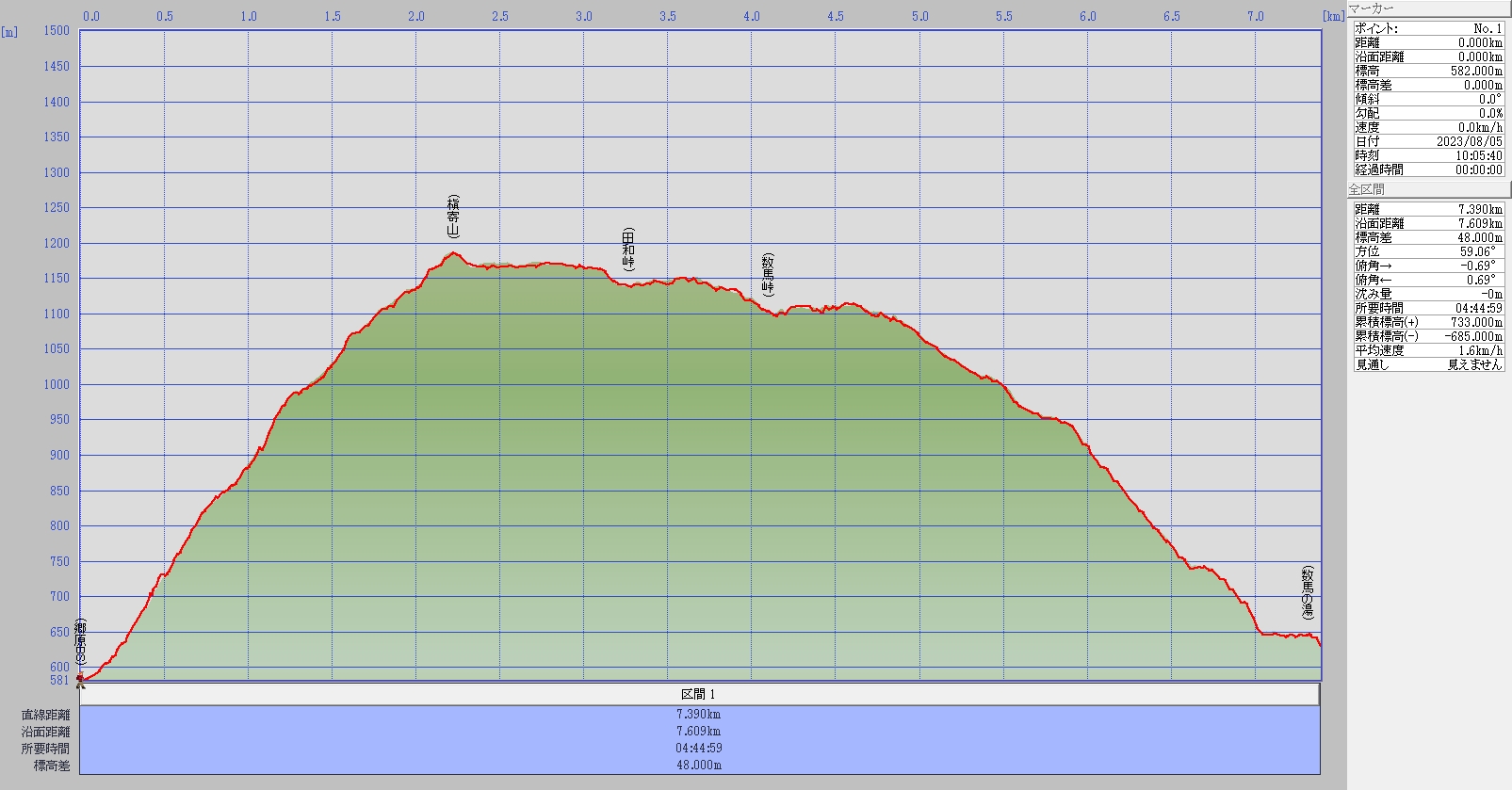 郷原BS~槙寄山~数馬峠~数馬の湯