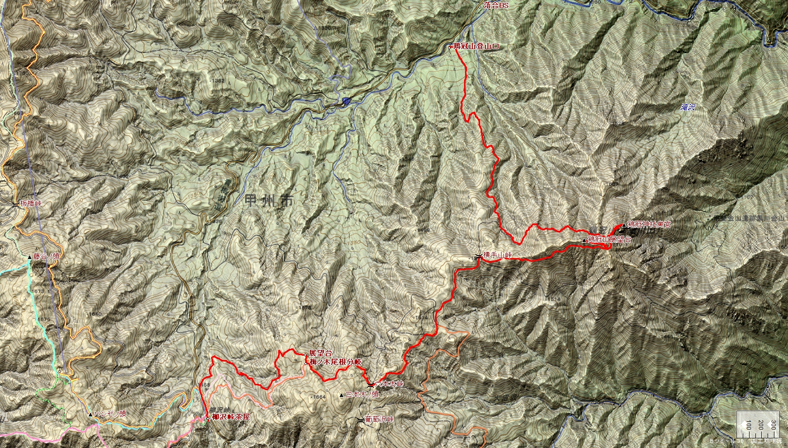 鶏冠山登山口~鶏冠神社奥宮~黒川山~鶏冠山~横手山峠~六本木峠~柳沢峠