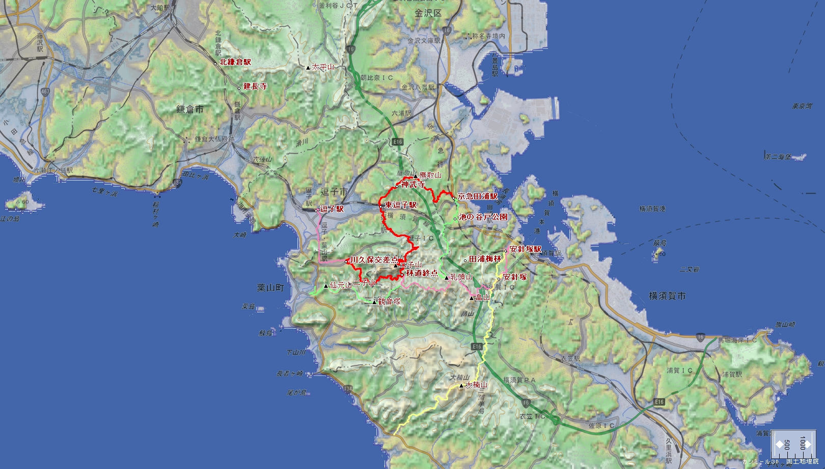 川久保BS~二子山~東逗子駅~鷹取山~京急田浦駅