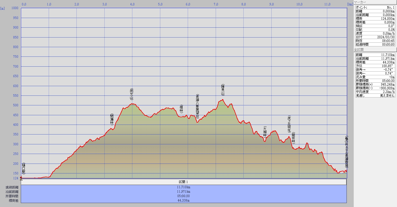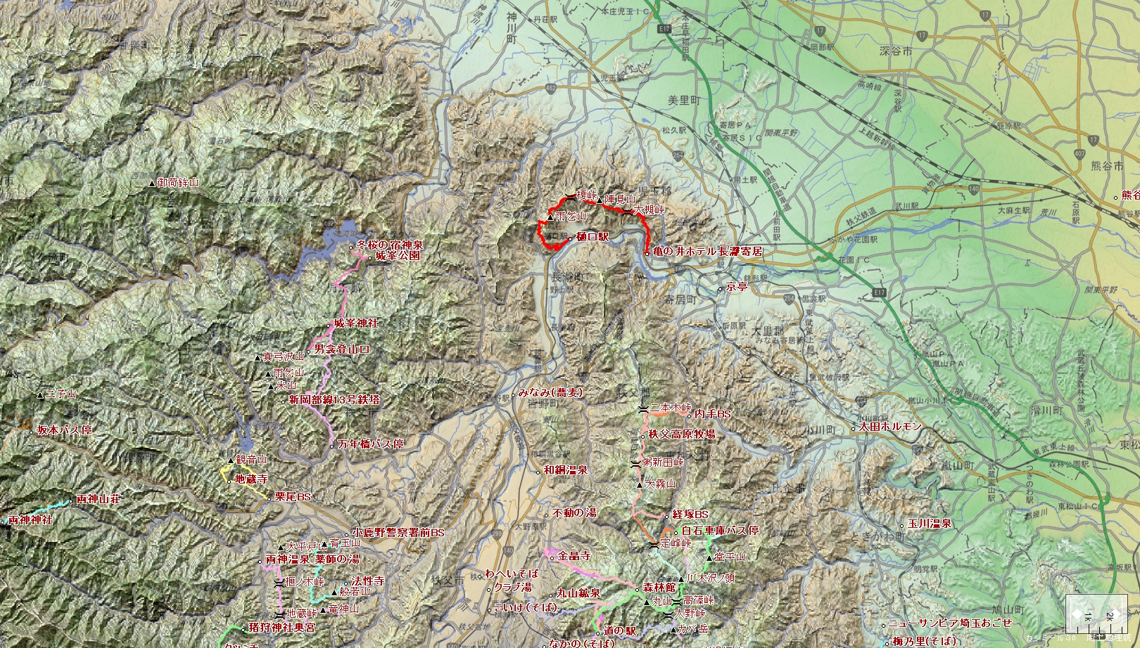 樋口駅~雨乞山~陣見山~虎ヶ丘城址~亀の井ホテル長瀞寄居