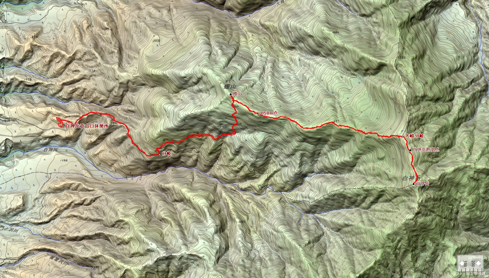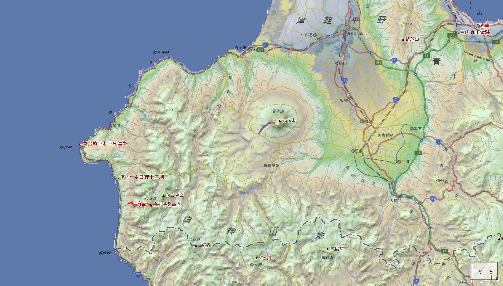 白神岳登山口~二股分岐~蟶山~大峰分岐~白神岳~大峰分岐~二股分岐~白神岳登山口