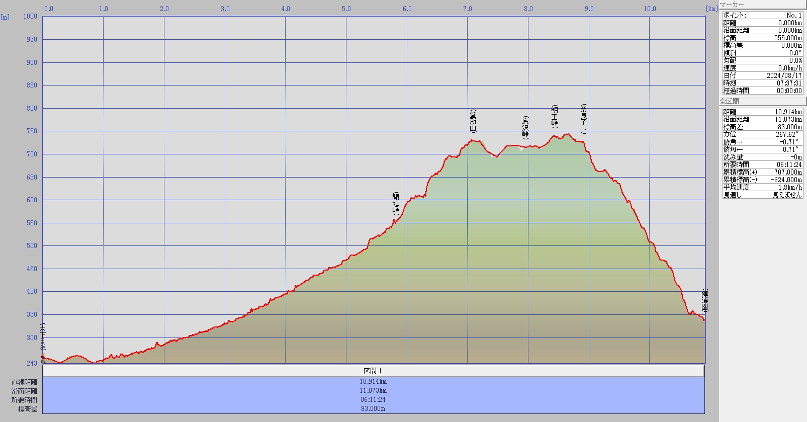木下BS~関場峠~堂所山~明王峠~奈良子峠~陣渓園