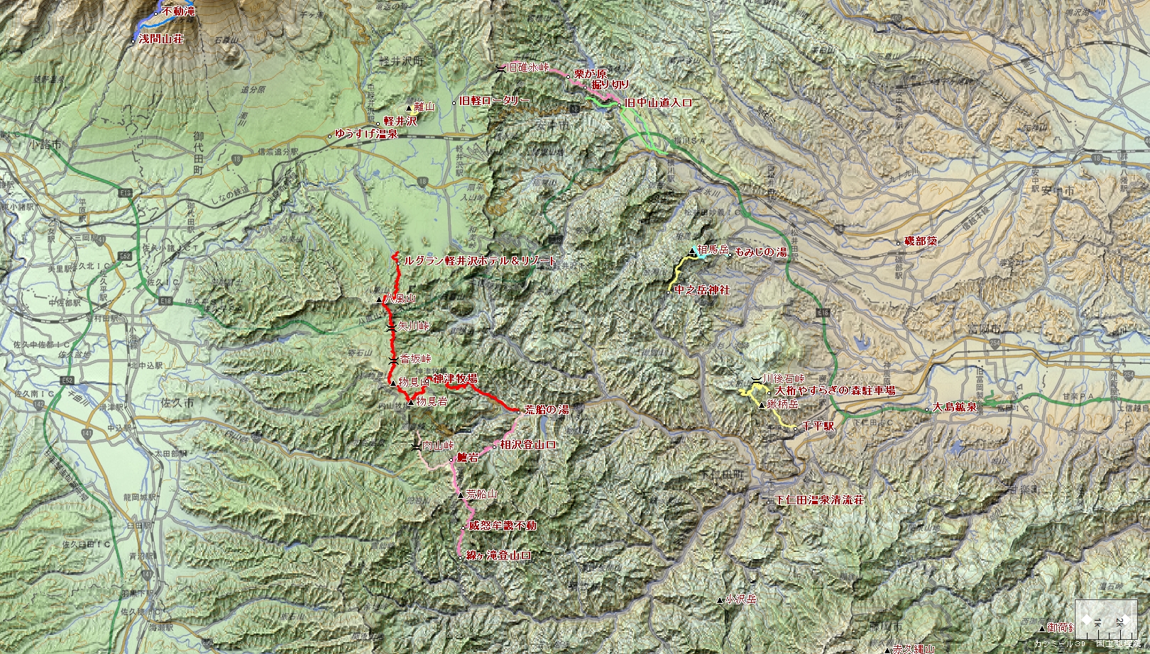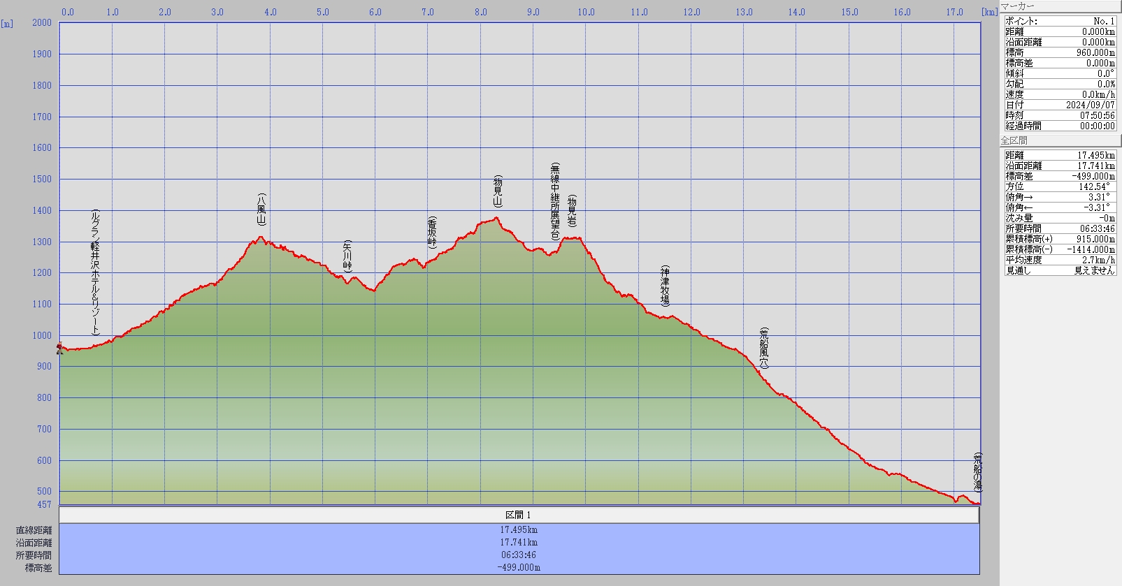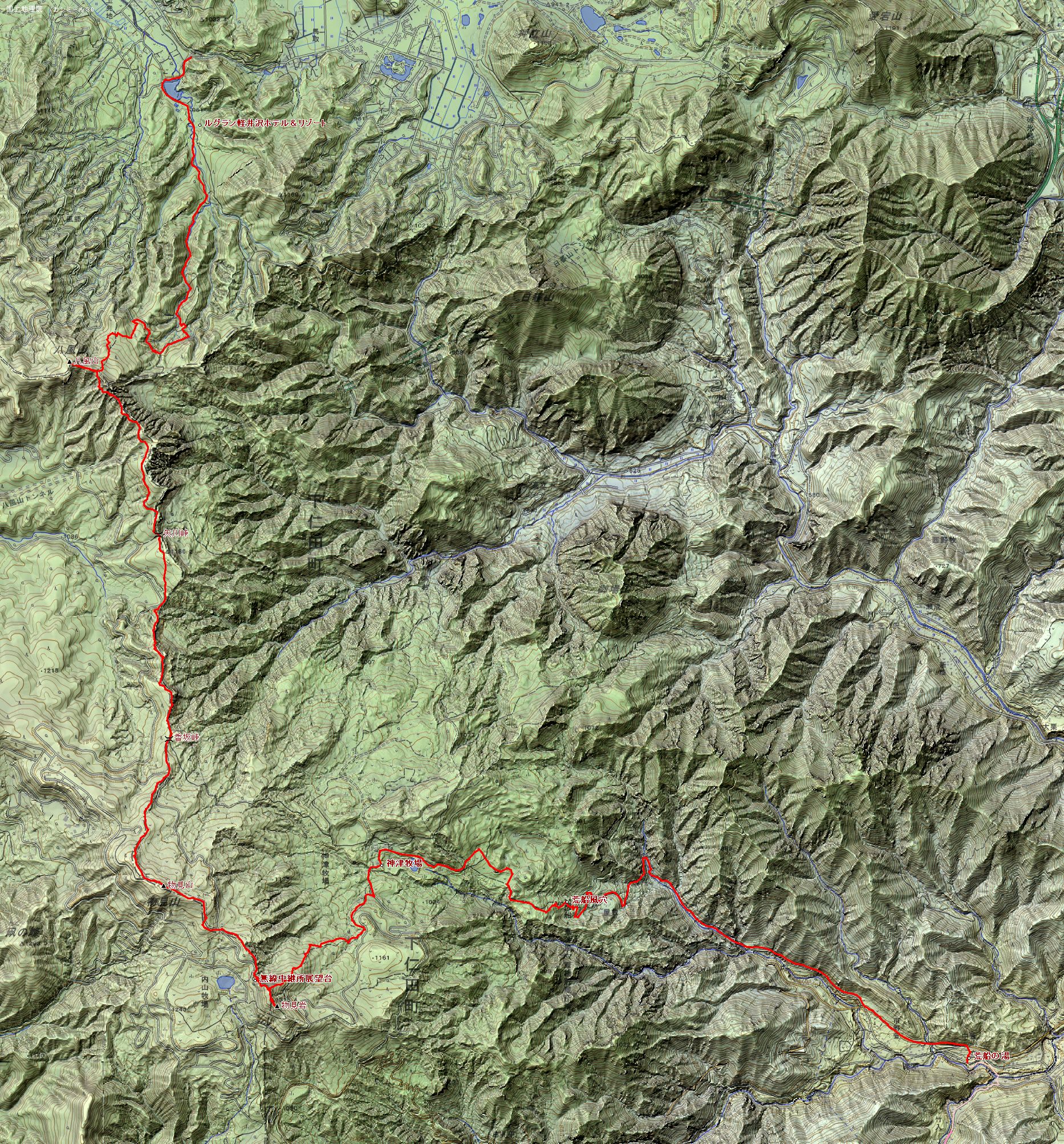八風温泉入口~八風山~矢川峠~香坂峠~物見山~物見岩~神津牧場~荒船の湯