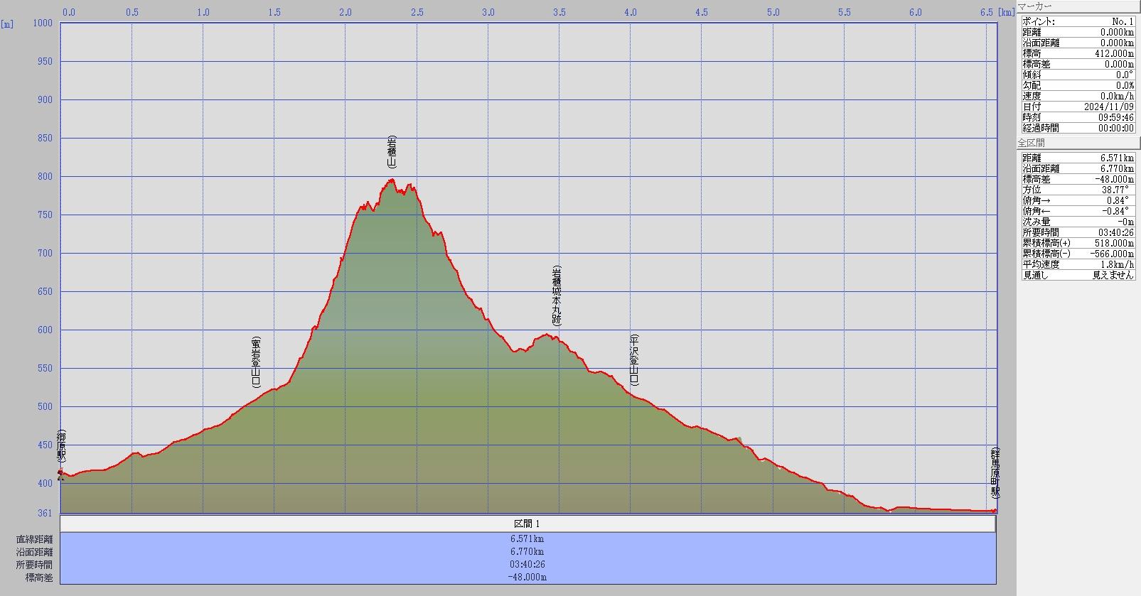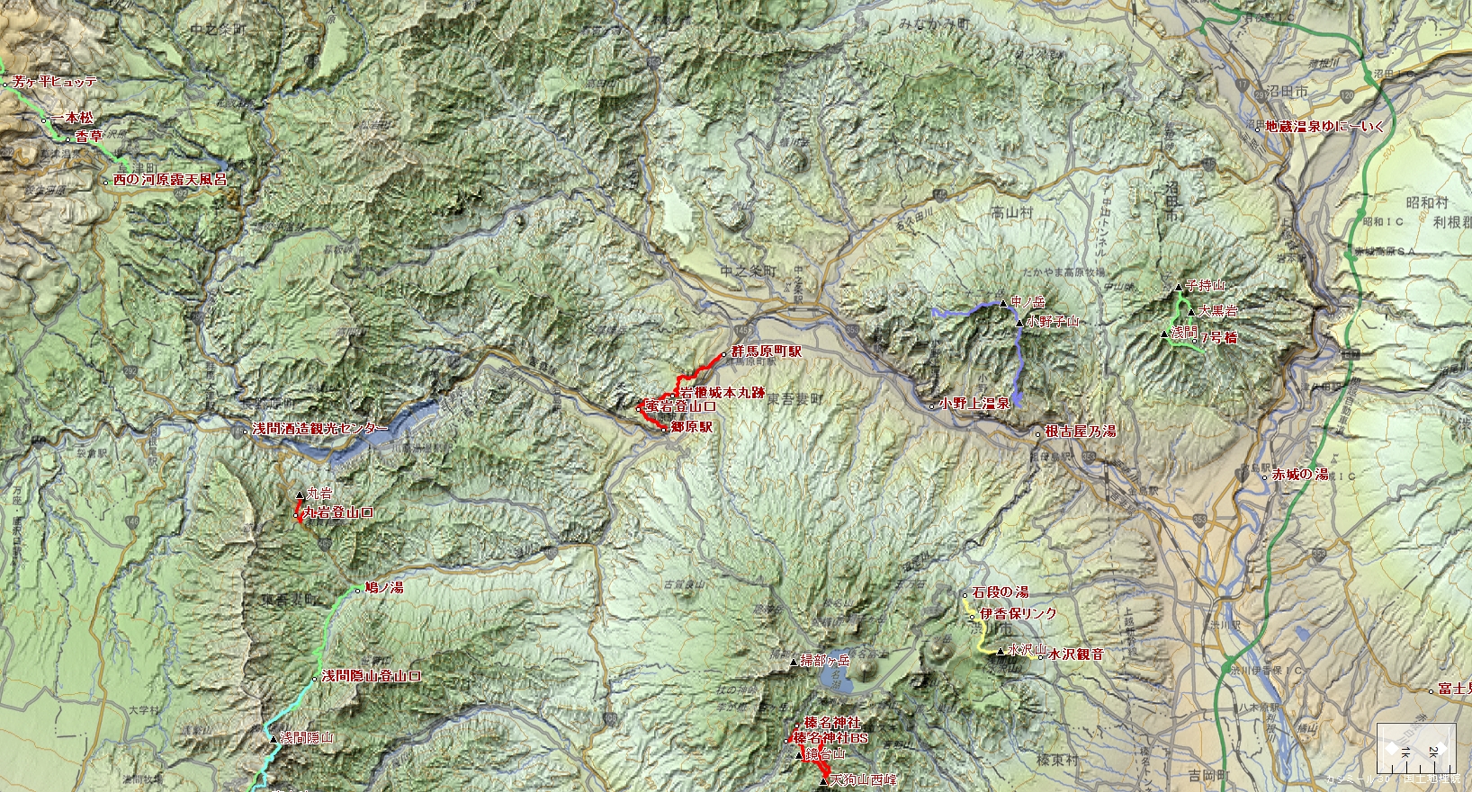郷原駅~蜜岩登山口~岩櫃山~平沢登山口~群馬原町駅