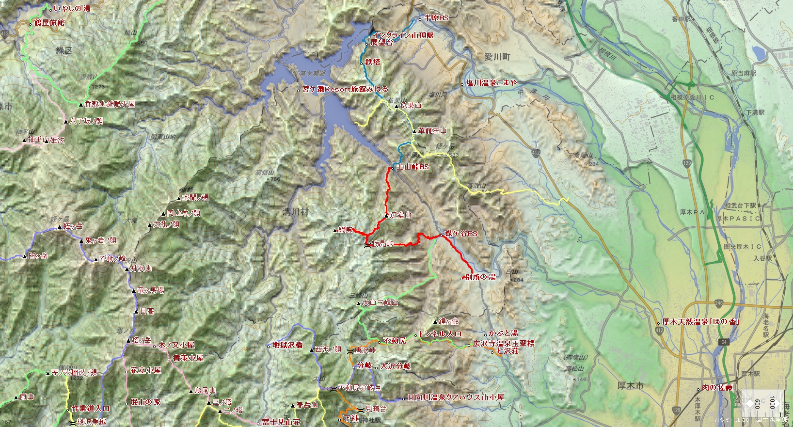 土山峠~辺室山~鍋嵐~物見峠~煤ヶ谷BS~別所の湯