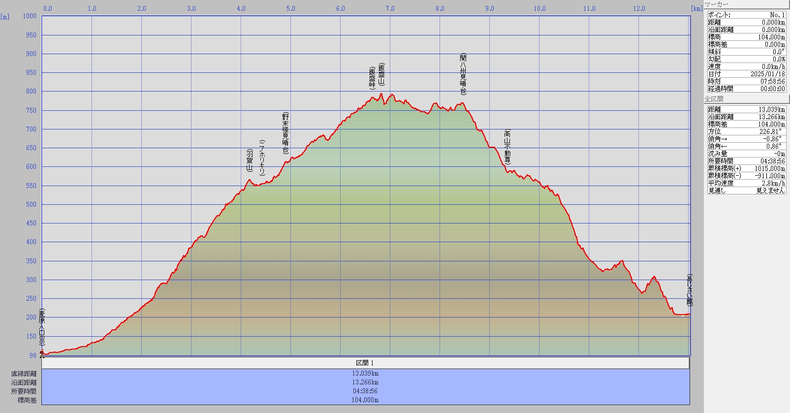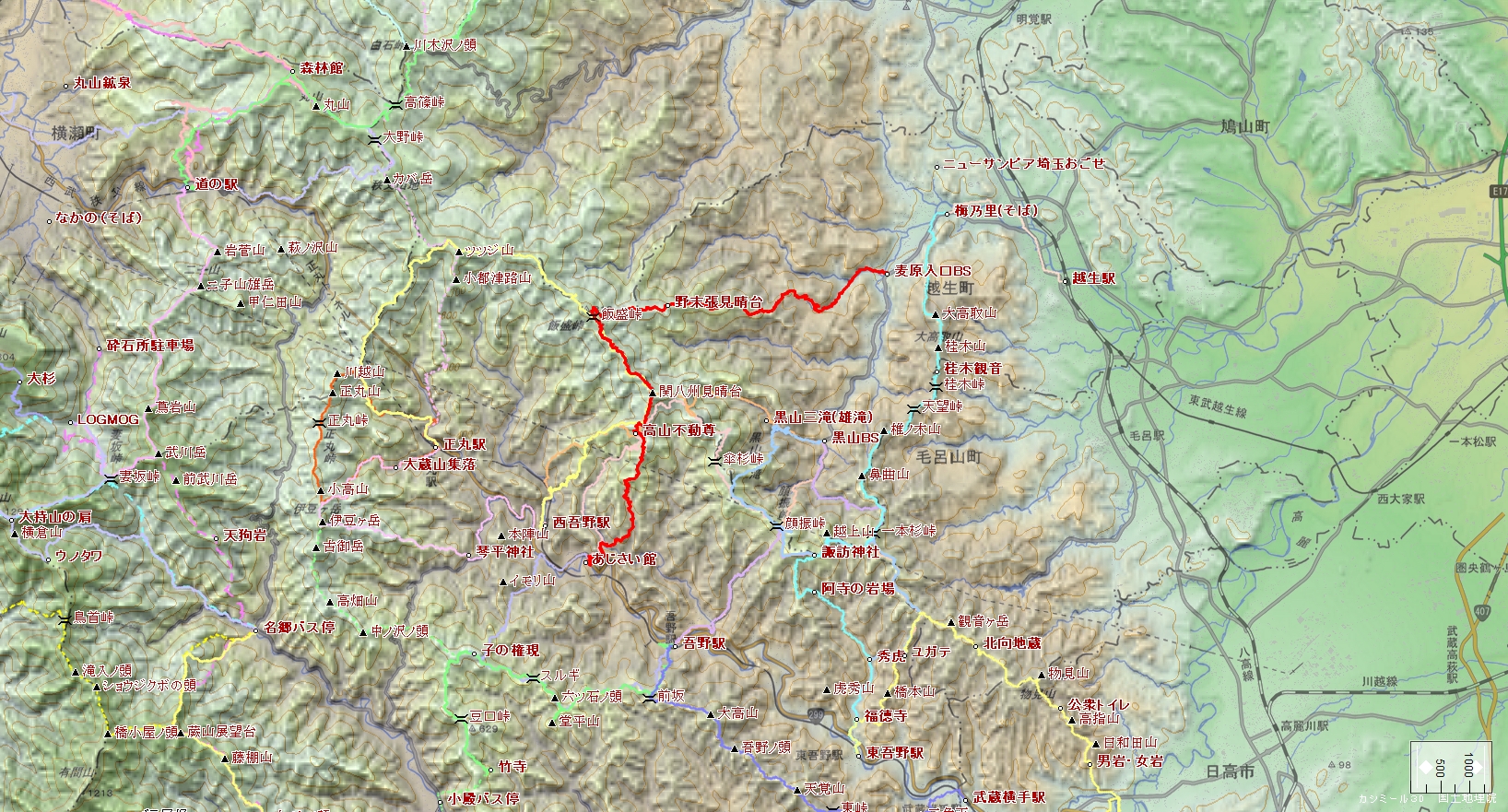 麦原BS~羽賀山~野末張見晴台~飯盛山~関八州見晴台~休暇村奥武蔵こもれびの湯