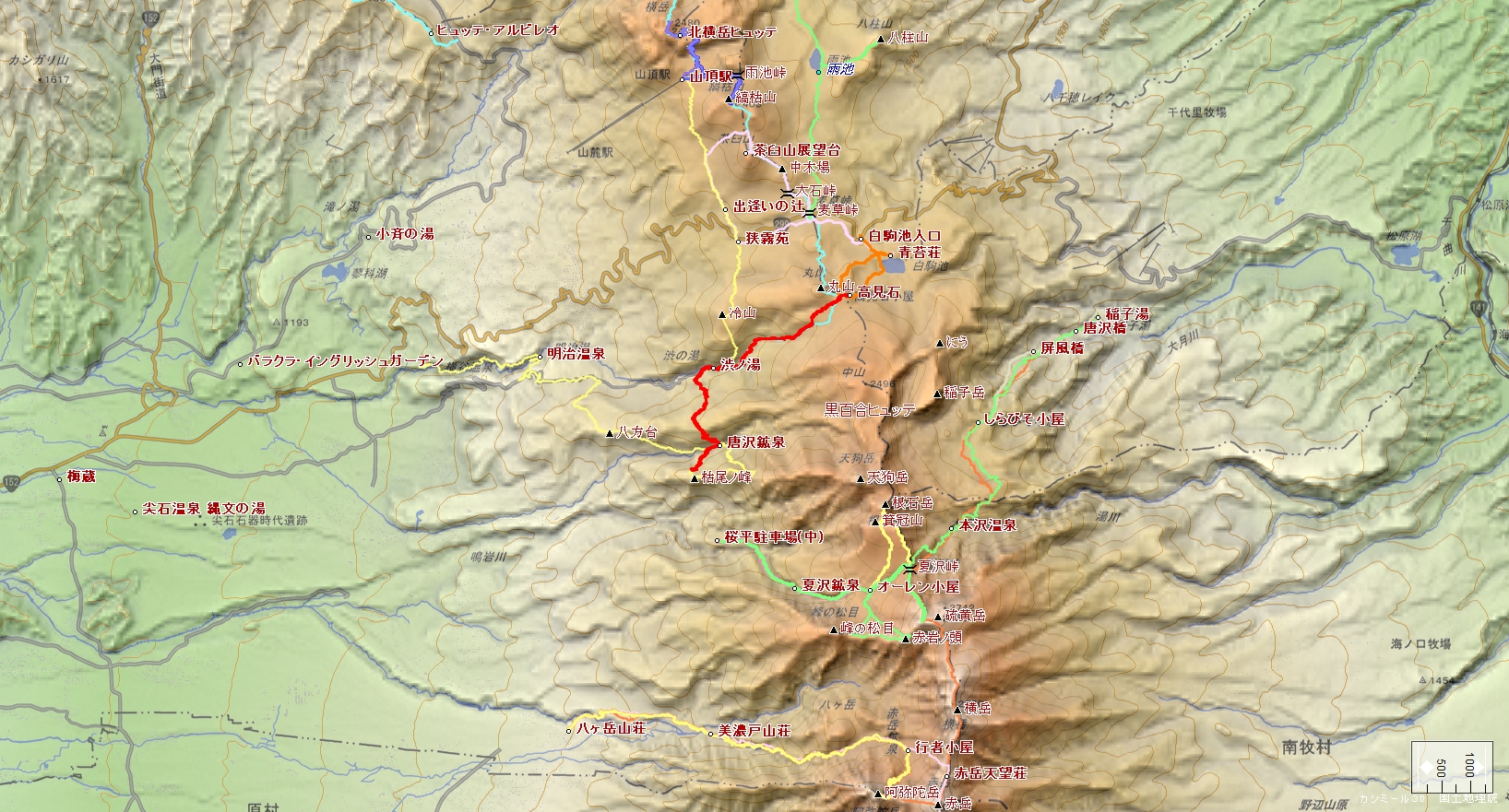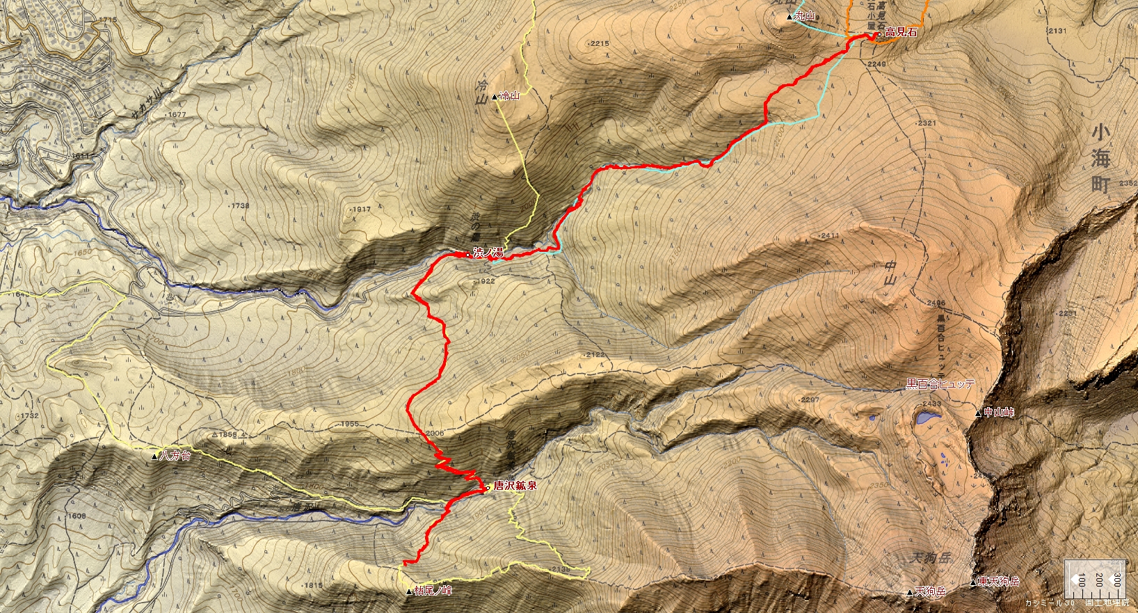 渋御殿湯~唐沢鉱泉~枯尾ノ峰手前~唐沢鉱泉~渋御殿湯