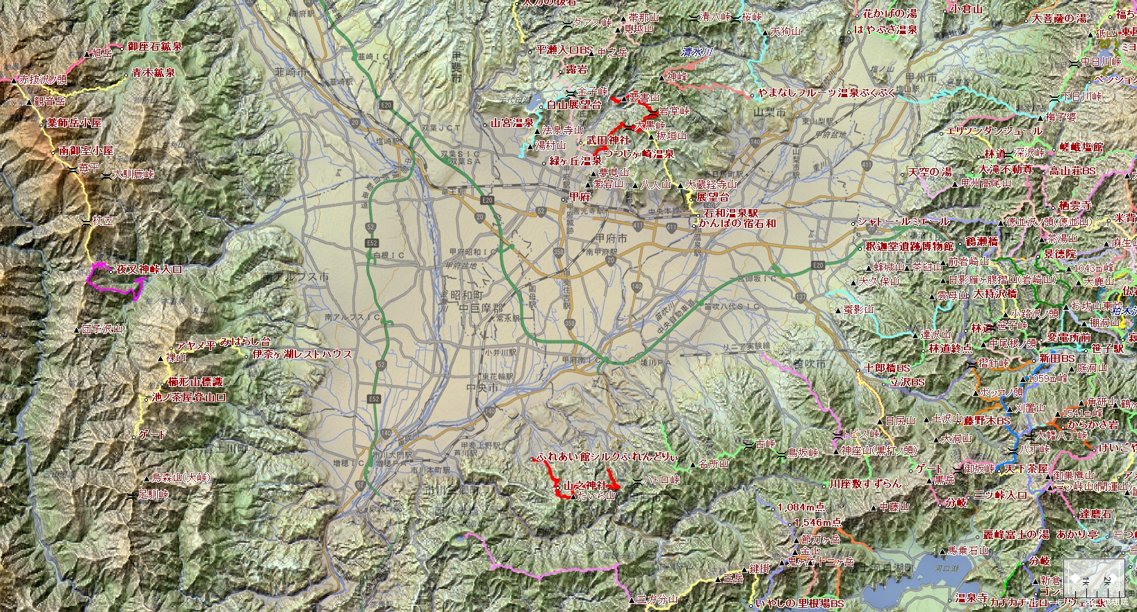 右左口トンネル入口~右左口峠~七覚山~関原峠~たいら山~山之神社~シルクふれんどりぃ 要害山登山口~要害山~深草観音堂~鬼山~鹿穴~東山~つつじヶ崎温泉 Trail Map 2025年3月29日(土)~30日(日) 写真&ご報告へ戻る このちゃんINDEXへ
