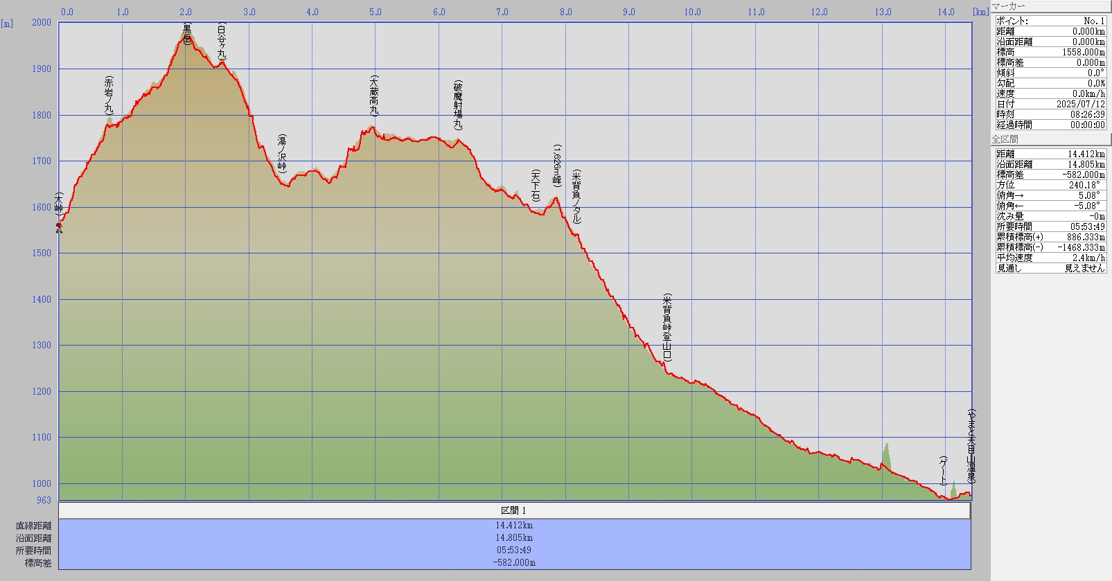 大峠~黒岳~湯ノ沢峠~米背負峠~やまと天目山温泉