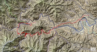 17 左岸から高巻いて堰堤の上に出た。8時41分