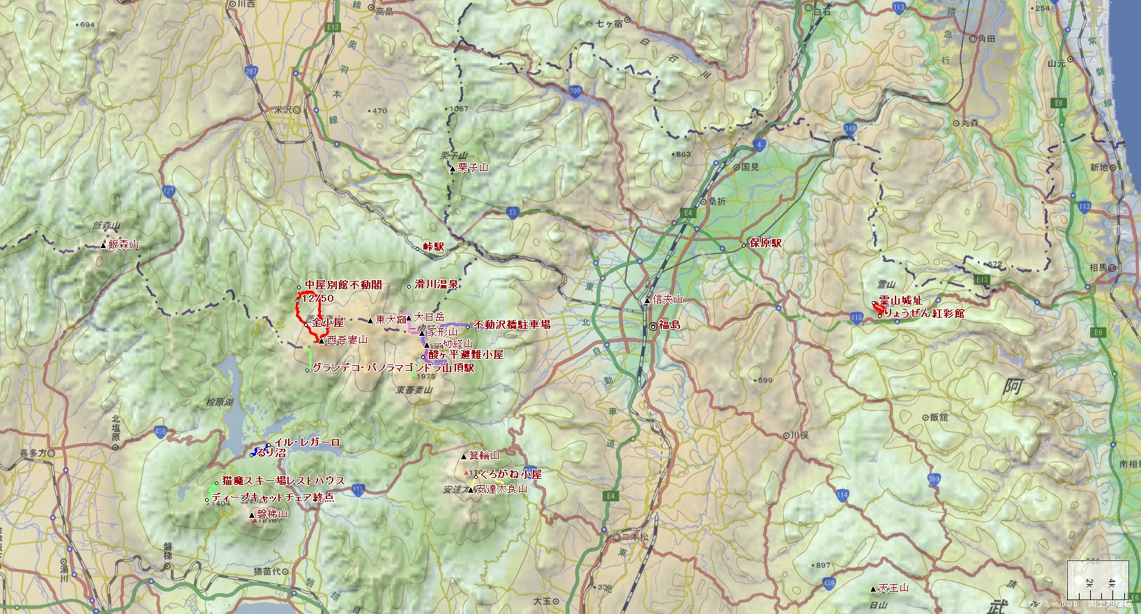 登山口~大木崖~竜崎~西吾妻山~梵天岩~第三リフト頂上駅~天元台ロープウェイ湯元駅 霊山こどもの村入口~霊山登山口~霊山城址~霊山~りょうぜん紅彩館 Trail Map 2025年10月12日(日)~13日(祝) 写真&ご報告へ戻る このちゃんINDEXへ