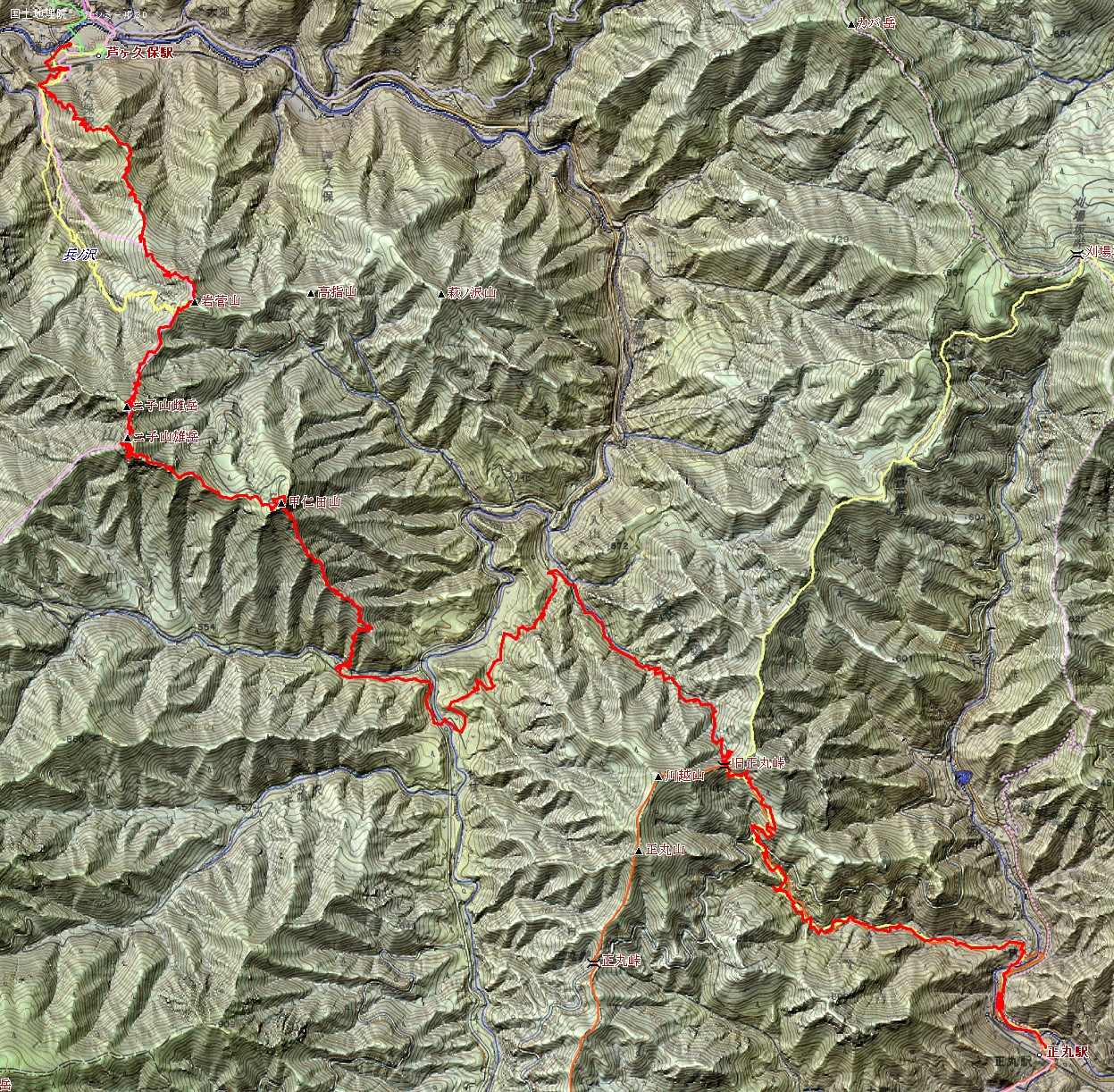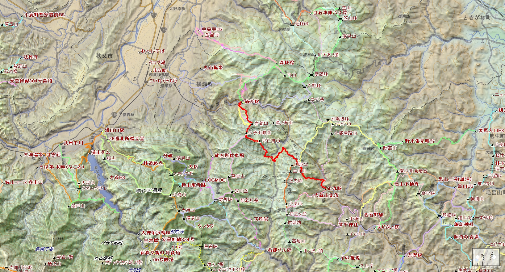 正丸駅~旧正丸峠~甲仁田山~二子山~岩菅山~道の駅あしがくぼ